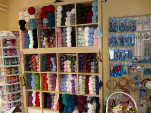 Horgoló-, hímző- és kötőfonalak, kötőtűk, horgolótűk, különböző rövidáru kiegészítők, ajándéktárgyak.