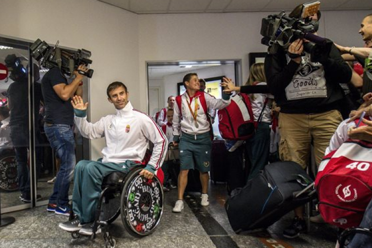 Több száz fős lelkes tömeg, családtagok, barátok, sporttársak, szurkolók hatalmas ovációval és virágcsokrokkal fogadták kedden kora este a Liszt Ferenc repülőtéren a riói XV. paralimpiai játékokról hazatért sportolókat.